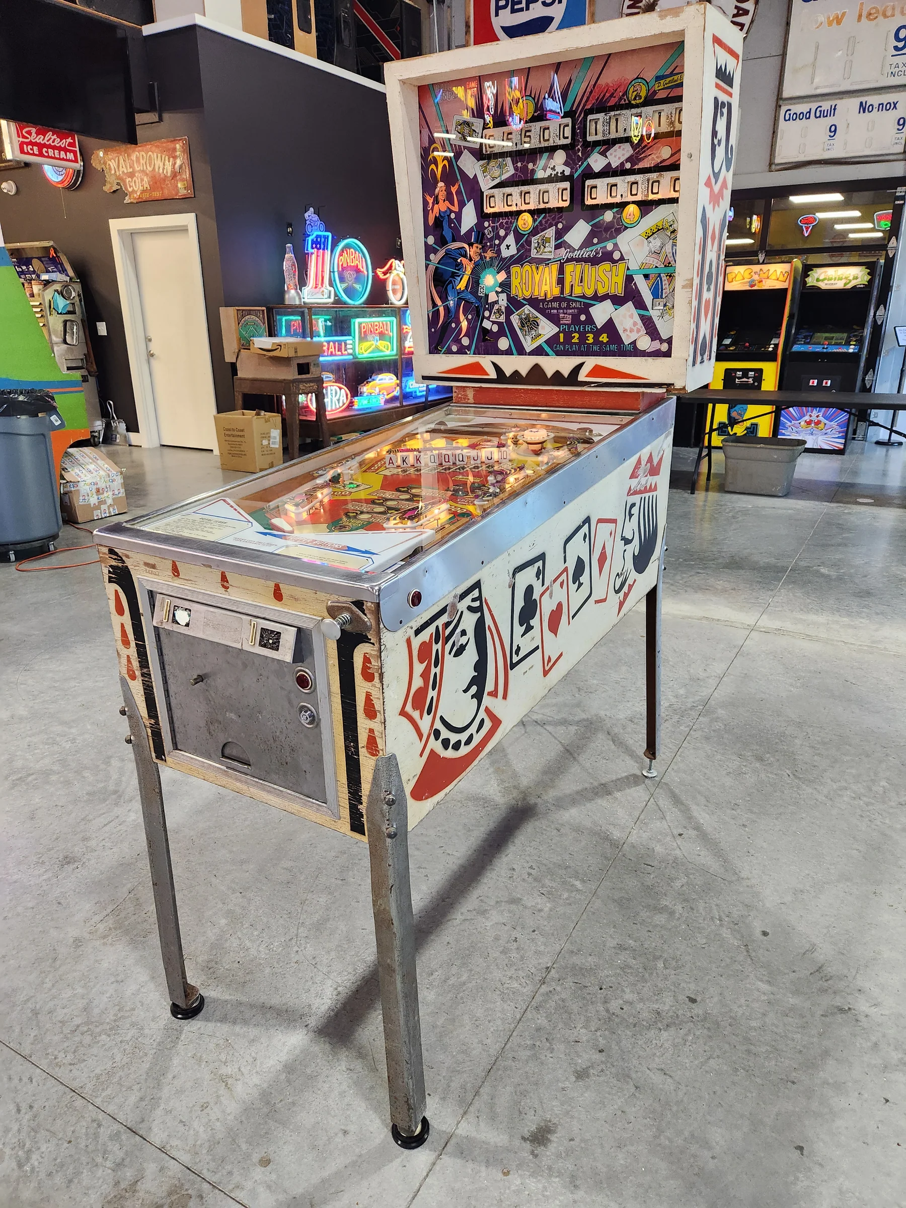 Add a timeless classic to your collection with the 1976 Gottlieb Royal Flush Pinball Machine—an iconic electromechanical (EM) pinball game beloved for its casino-themed design and smooth gameplay. Whether you’re a dedicated pinball collector or simply want a piece of arcade nostalgia for your home game room, this machine is a standout choice.