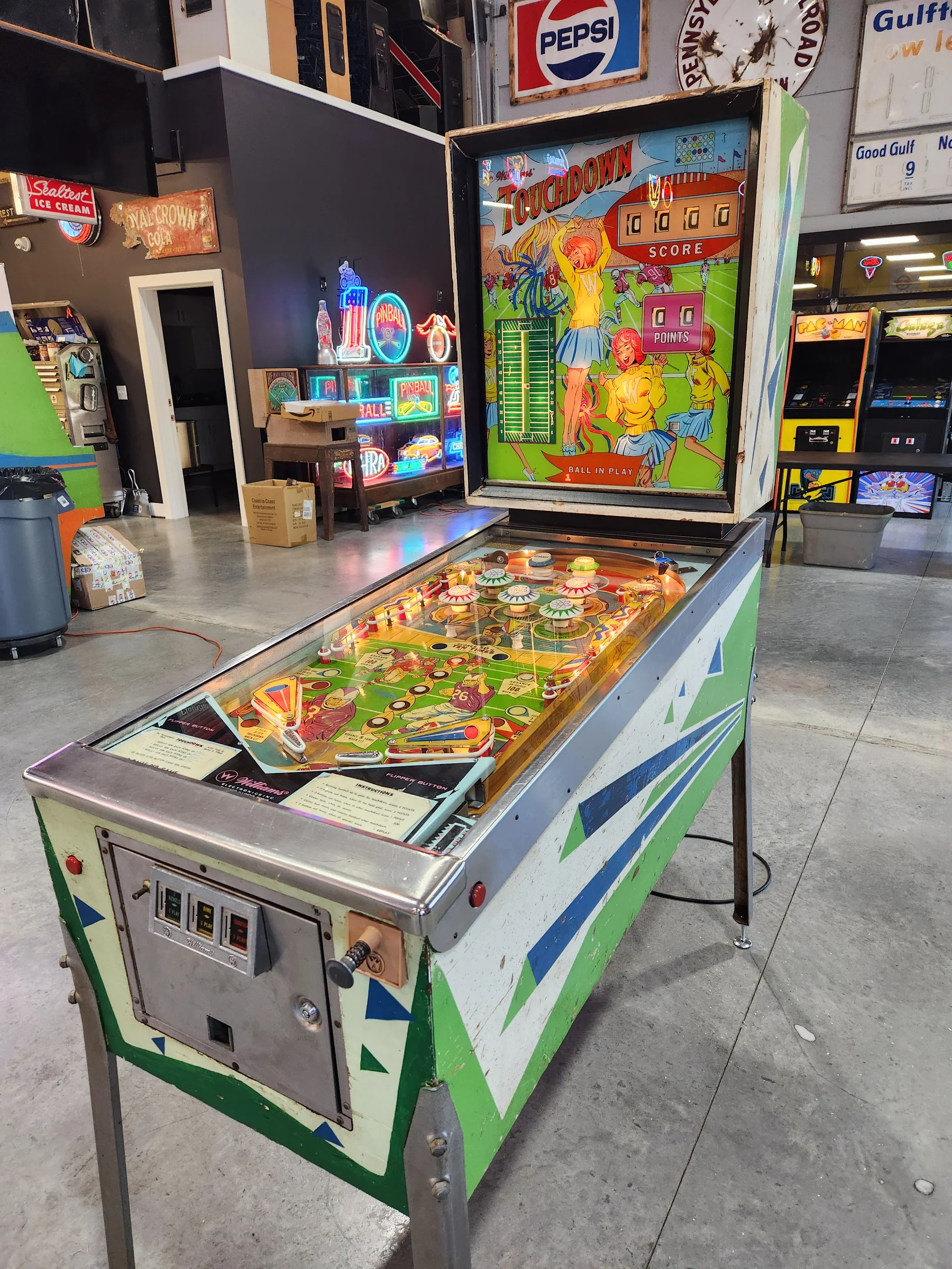 When we first acquired this Williams Touchdown, it was non-working and forgotten—but we’ve brought it fully back to life with care and precision. As with all of our machines at Larryjordanpinballadventure.com, it has been professionally serviced and tested to ensure top performance.