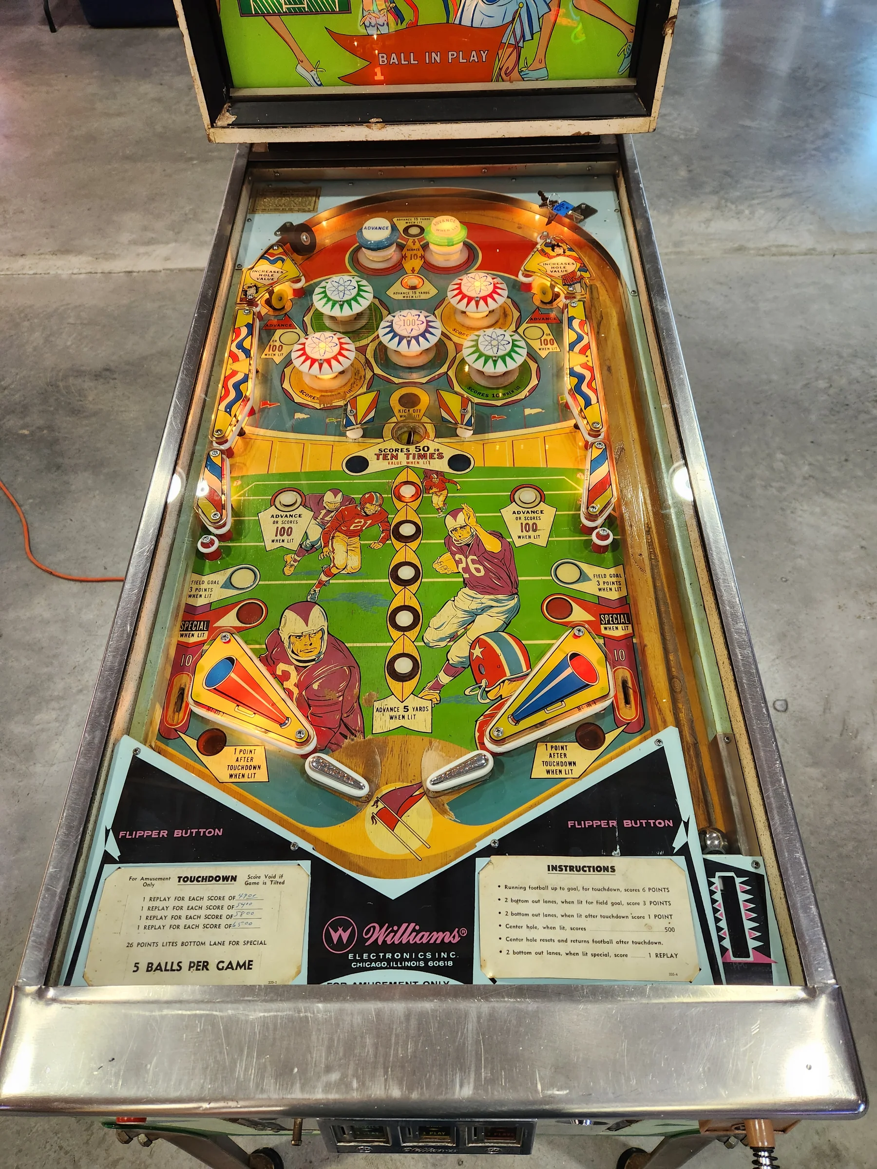 TOUCHDOWN-1967 Williams EM Pinball Machine – Vintage Football-Themed Arcade Game
