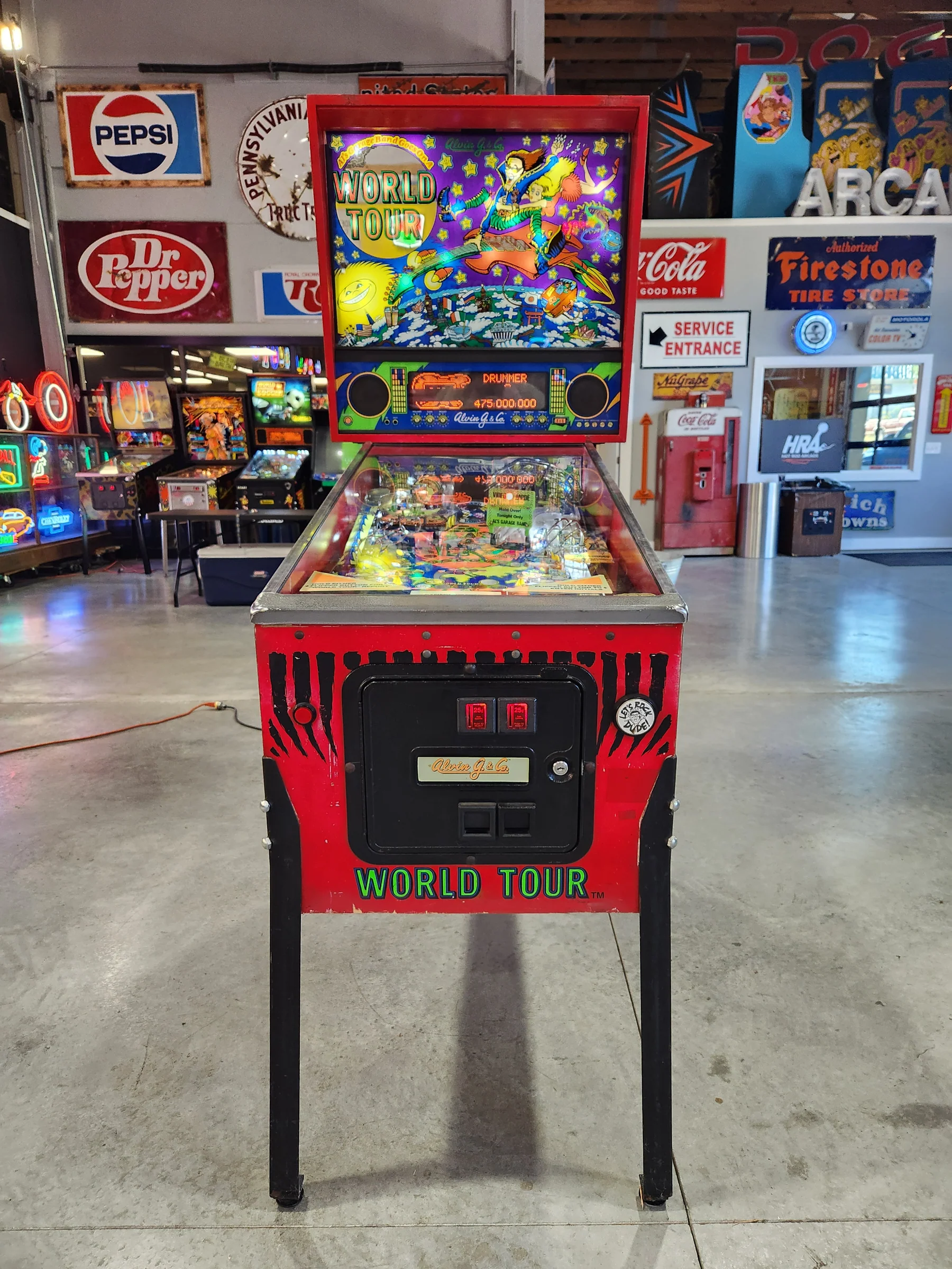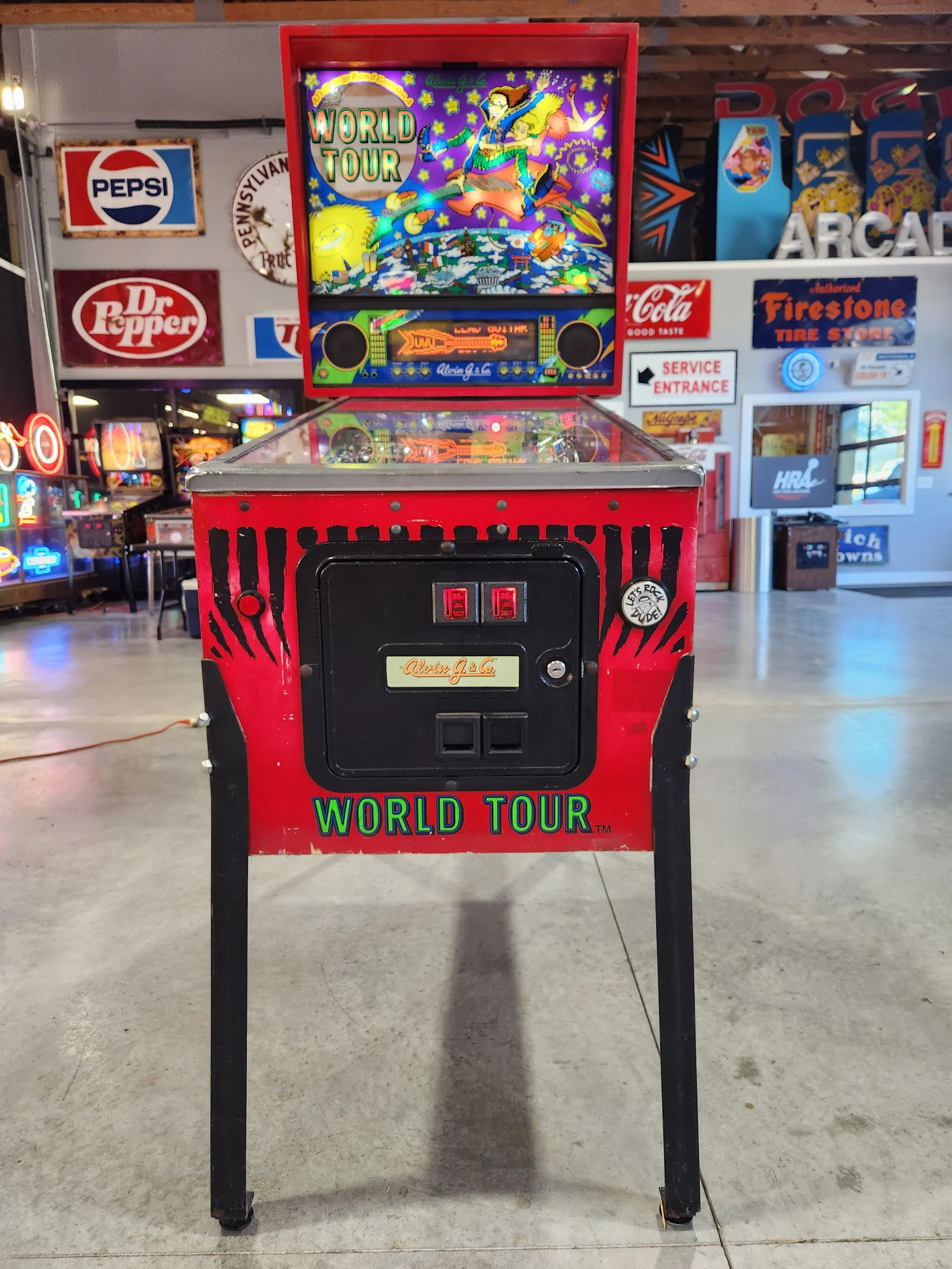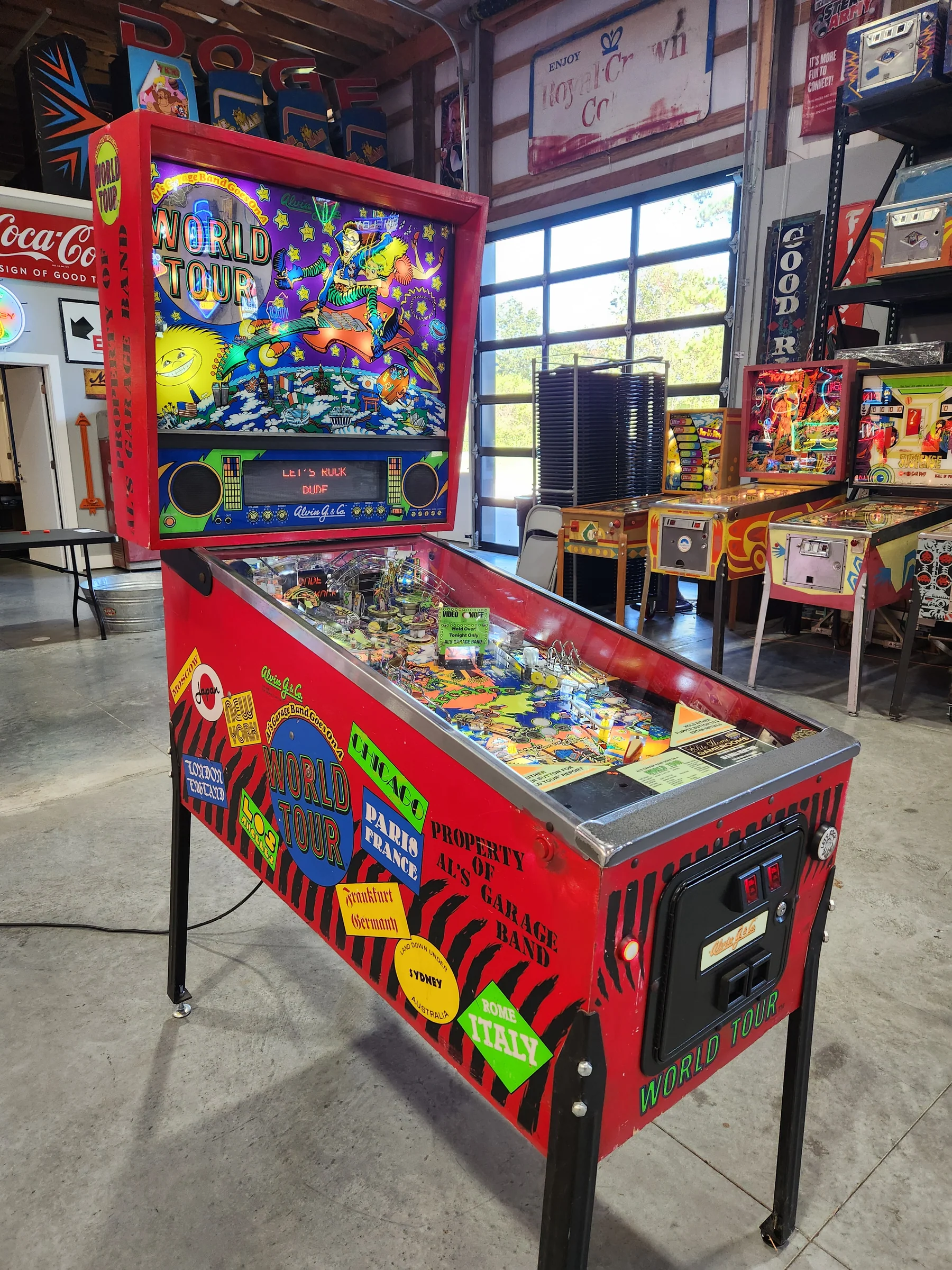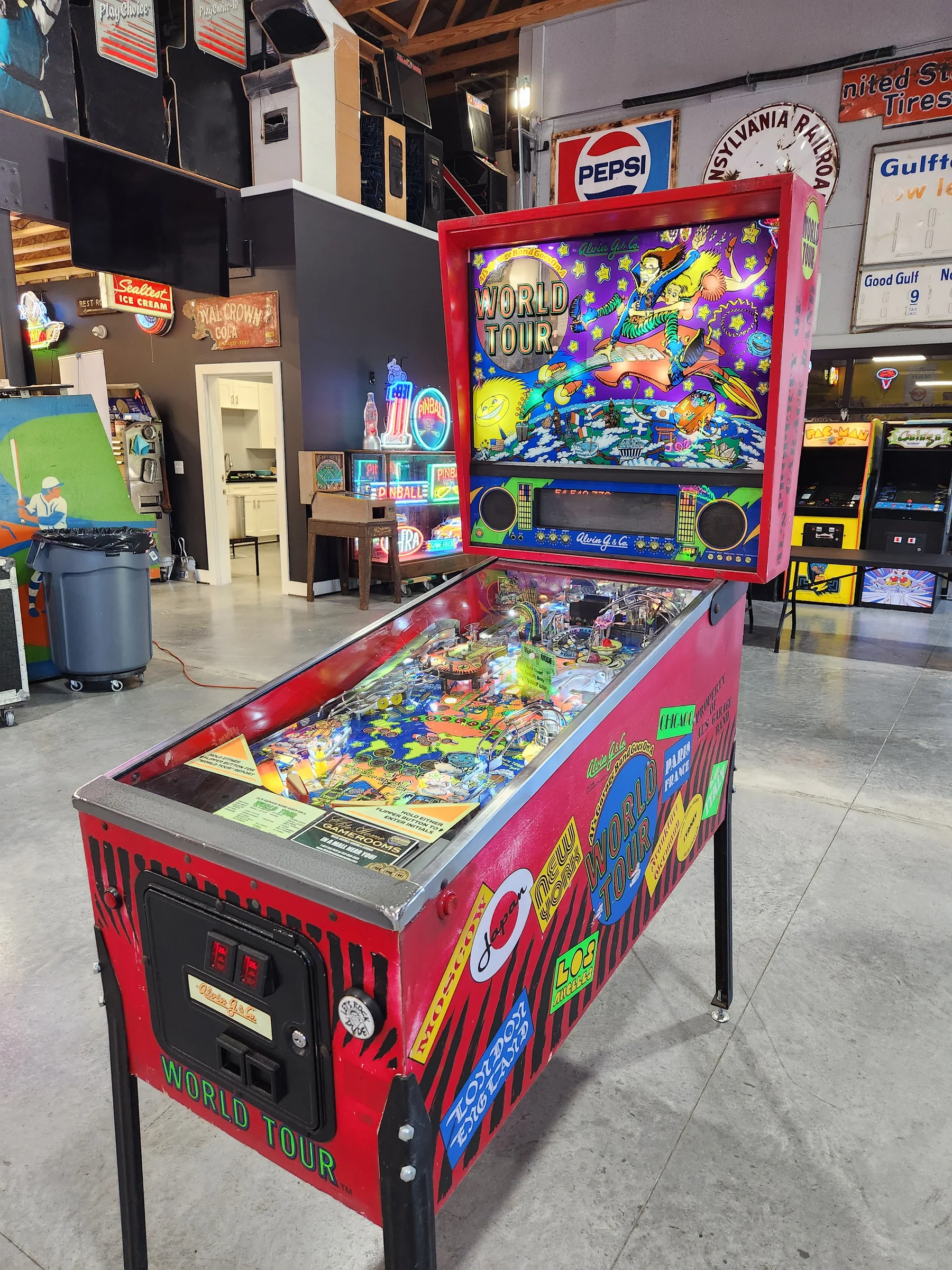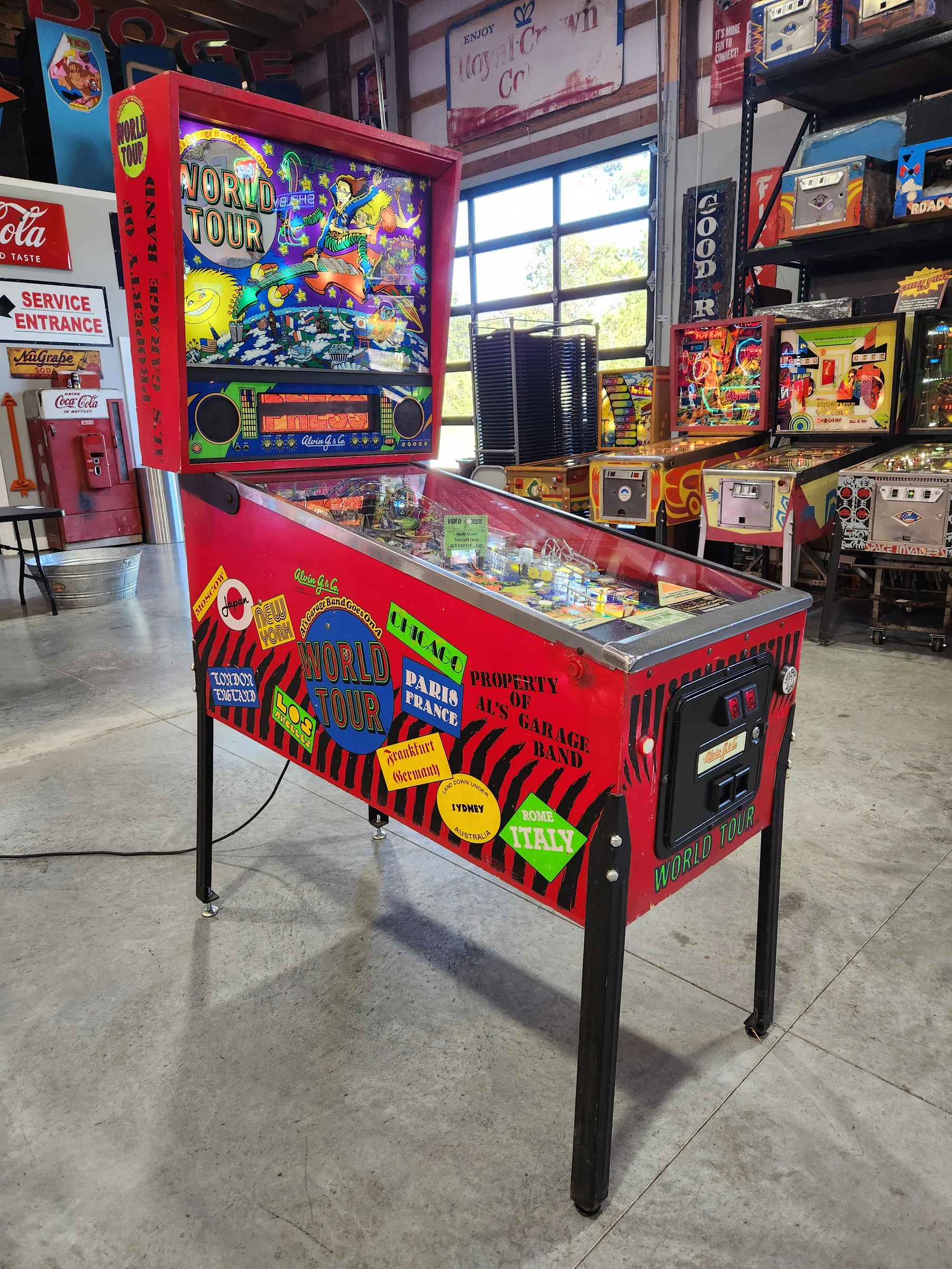 Bring home a true piece of pinball history with this rare 1992 Al’s Garage Band Goes On a World Tour pinball machine by Alvin G. and Co. A fun and quirky title known for its upbeat theme and creative playfield design, this machine has been fully refurbished by our team at Larryjordanpinballadventure.com.